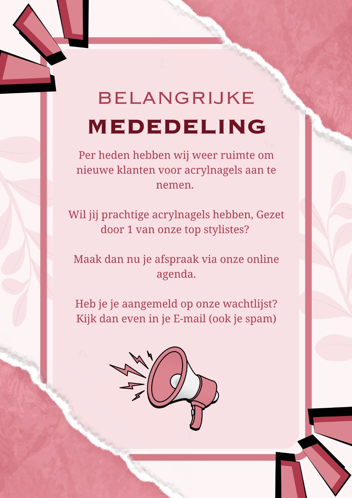 Wij zijn opzoek naar een nageltopper die ons team wil komen versterken. Dus Ben jij een allround nagelstyliste met voornamelijk ervaring met Acryl? Dan zoeken wij jou.